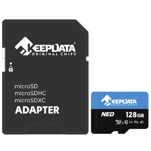 Cartão de Memória KeepData Neo Micro SD 128GB KDMSDC10U1V10A1/128G é um cartão de memória microSDXC de 128 GB com padrão UHS-I e classe de velocidade C10/A1, pensado para expandir o espaço de armazenamento de celulares, câmeras, tablets e outros dispositivos compatíveis. Ele oferece transferência rápida de arquivos, capacidade alta para guardar fotos, vídeos (inclusive gravações em 4K), músicas e aplicativos, e vem no formato compacto típico dos cartões microSD com desempenho estável para uso diário.