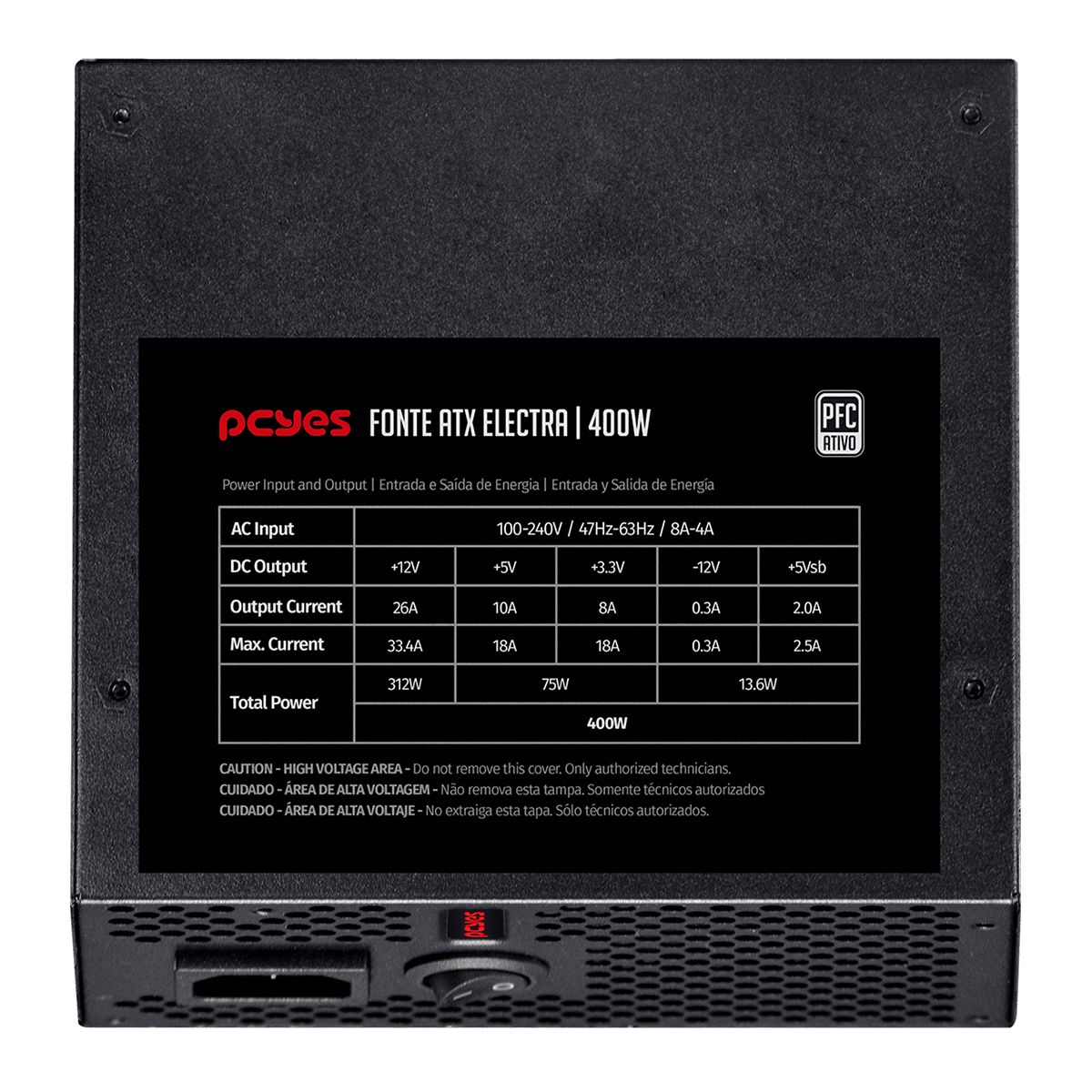 - Tensão de Entrada: Full Range 100-240V.