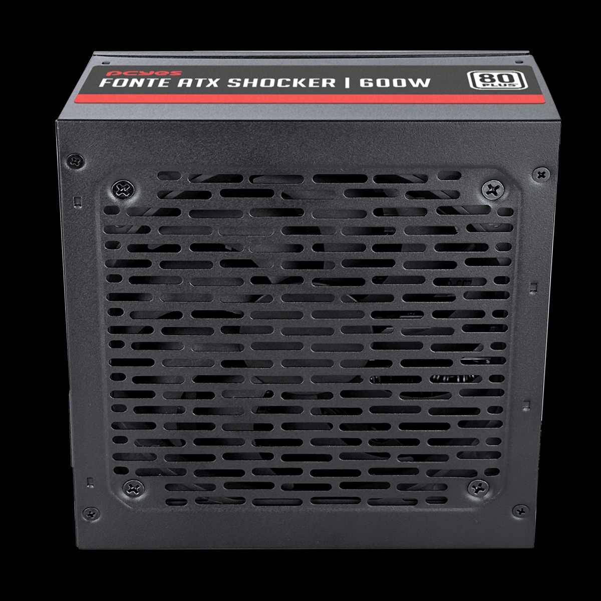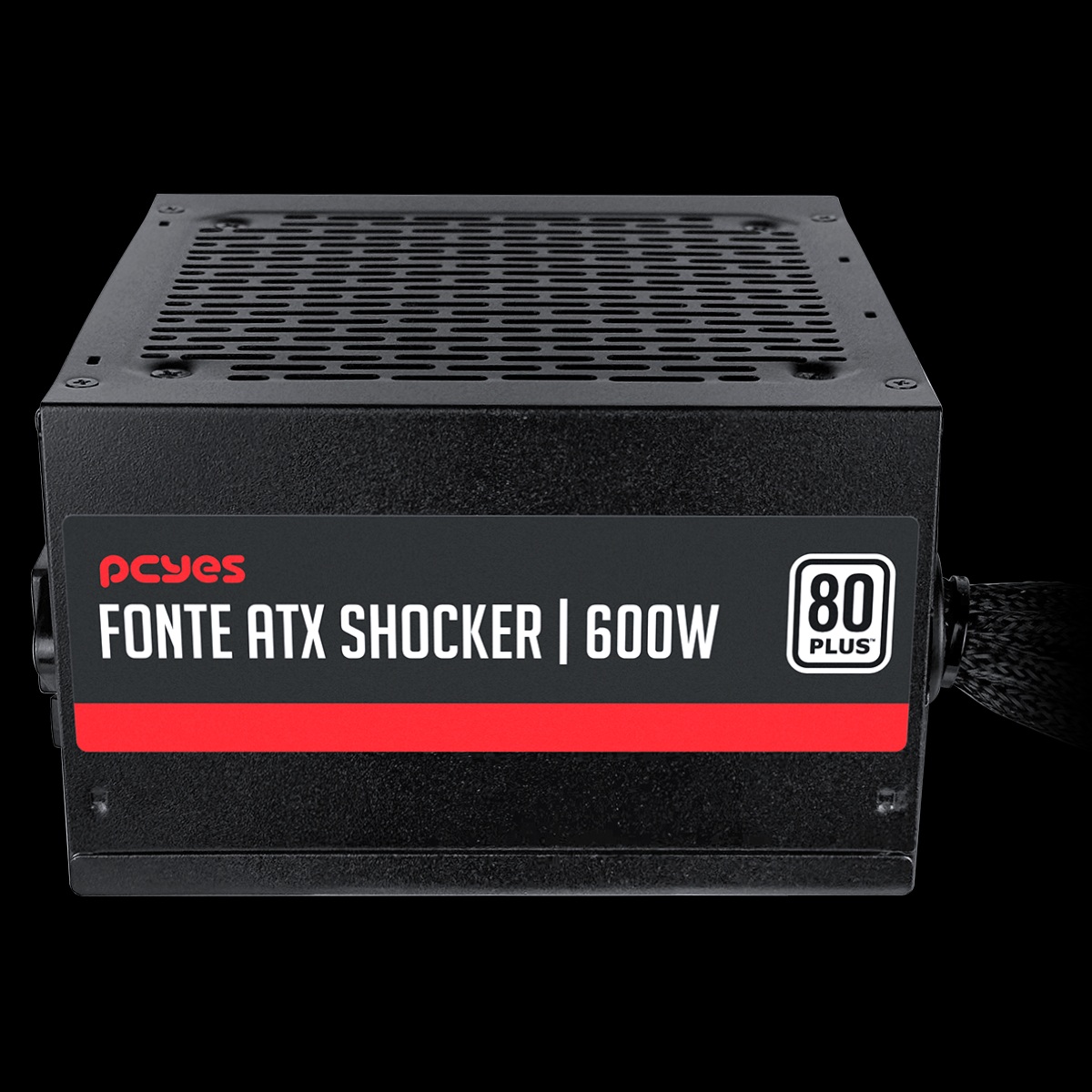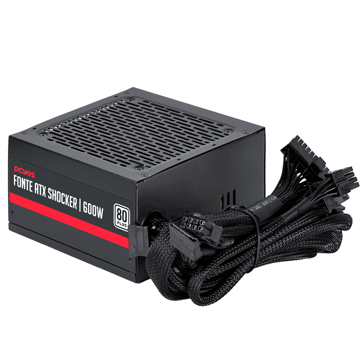 A Fonte?PCYES?SHOCKER?600W?80?Plus?White?é uma fonte de alimentação ATX de 600 W com certificação 80 Plus padrão (eficiência > 80 %). Ela opera em faixa bivolt (115V-230V) com PFC ativo, tem ventilador de 120 mm silencioso e utiliza cabos revestidos em nylon na cor preta. Conta ainda com múltiplas proteções de segurança — como sobretensão, subtensão, curto-circuito e sobrecorrente — oferecendo energia estável para sistemas gamers ou de uso intermediário.