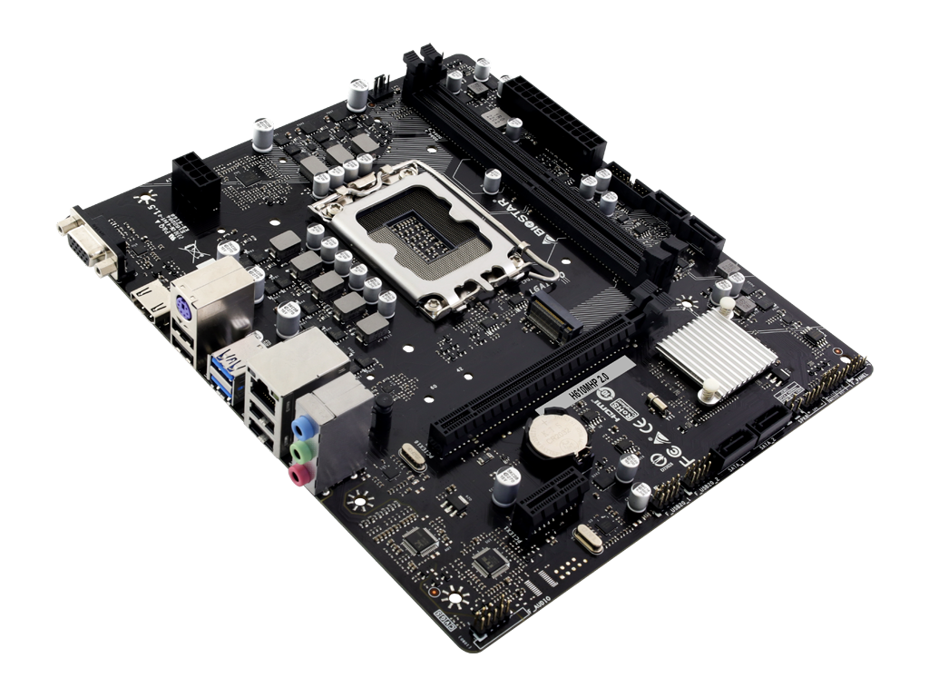 A placa-mãe Biostar H610MHP se destaca por sua abordagem focada no desempenho, oferecendo armazenamento eficiente com 4 conectores SATA e um slot M.2 versátil. Equipada com 2 slots DIMM DDR4 Dual Channel com suporte para até 3200 MHz e capacidade máxima de 64 GB, ela garante um desempenho poderoso da memória interna.